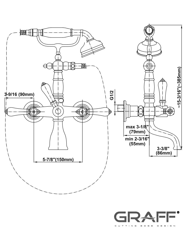 Graff Adley Bateria wannowo-natryskowa ścienna z zestawem prysznicowym Chrom E-3853-LM34