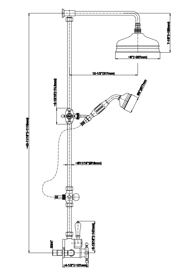 Charakterystyka: z deszczownicą na ramieniu, ze słuchawką prysznicową na drążku