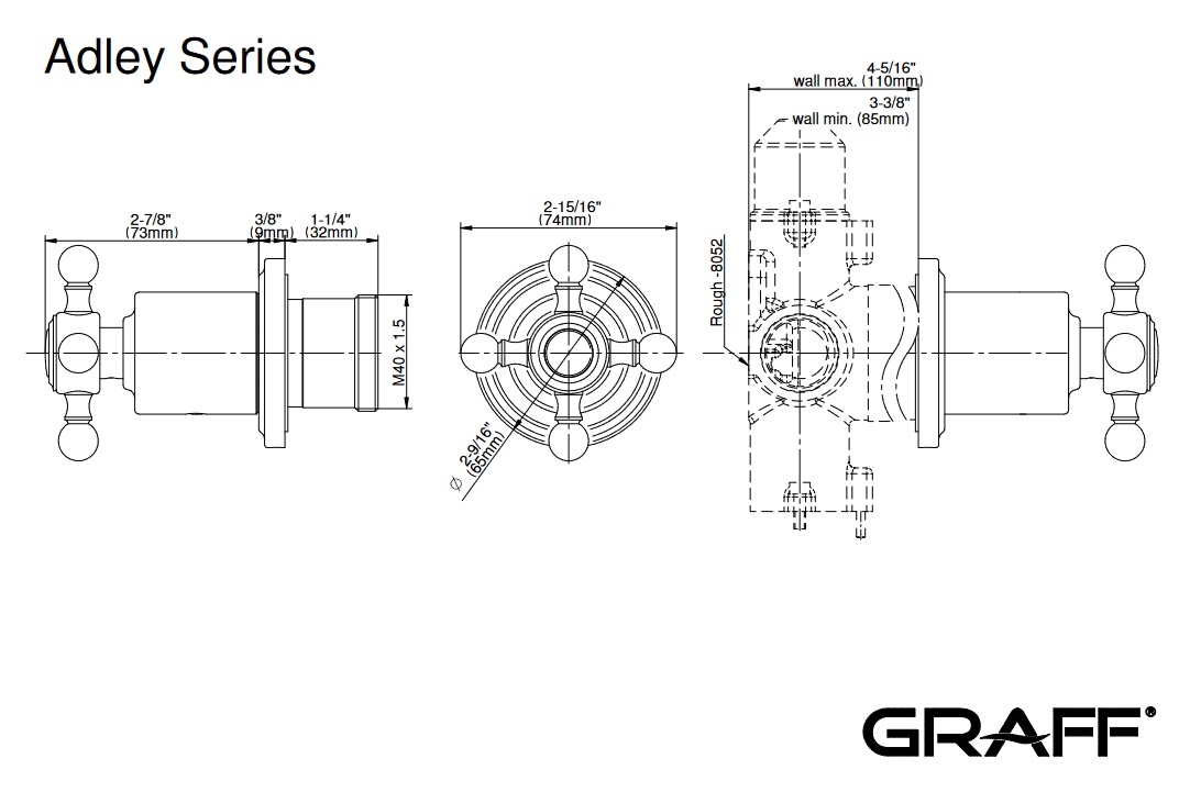 Graff Adley Rozdzielacz 2-drożny podtynkowy - element zewnętrzny Chrom E-8038-C2E1-T