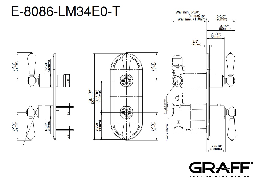 Graff Adley Bateria prysznicowa termostatyczna 2-uchwytowa podtynkowa - element zewnętrzny Chrom E-8086-LM34E0-T