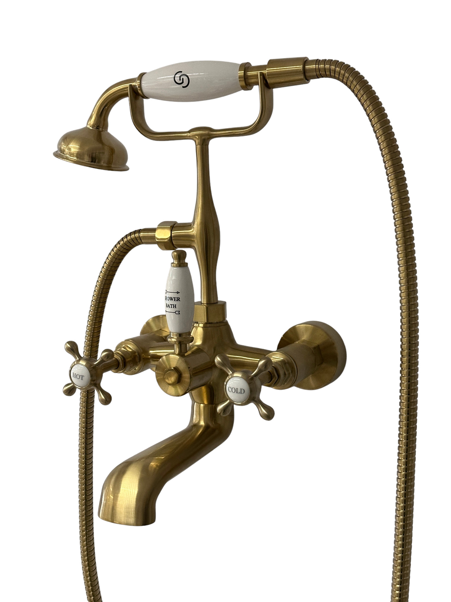 Galatea Design Retro Bateria wannowa ścienna z zestawem prysznicowym złoty szczotkowany GDT8BRG