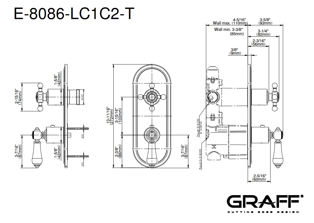 Graff Adley Bateria prysznicowa termostatyczna 2-uchwytowa podtynkowa - element zewnętrzny Chrom E-8086-LC1C2-T