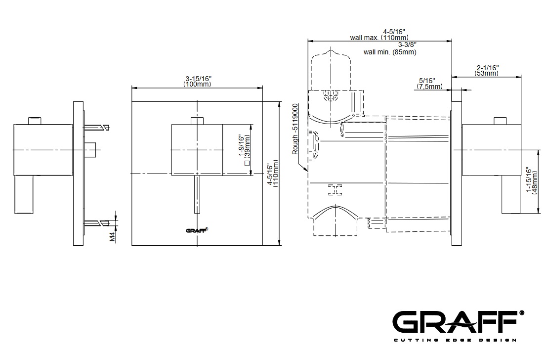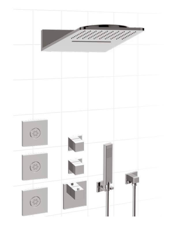 Graff Aqua-Sense Zestaw natryskowy termostatyczny podtynkowy z deszczownicą ścienną i zestawem prysznicowym Polerowana stal AQ04-PC