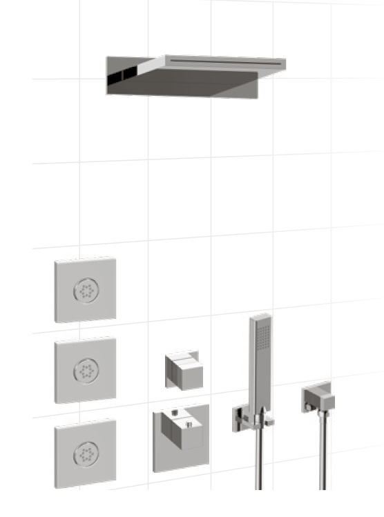 Graff Aqua-Sense Zestaw natryskowy termostatyczny podtynkowy z deszczownicą ścienną i zestawem prysznicowym Polerowana stal AQ06-PC