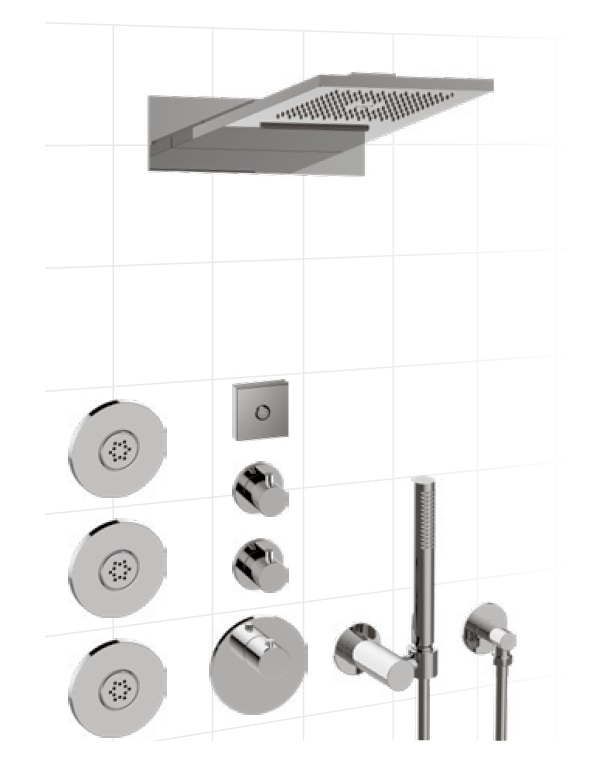 Graff Aqua-Sense Zestaw natryskowy termostatyczny podtynkowy z deszczownicą ścienną i zestawem prysznicowym Polerowana stal AQ08-PC