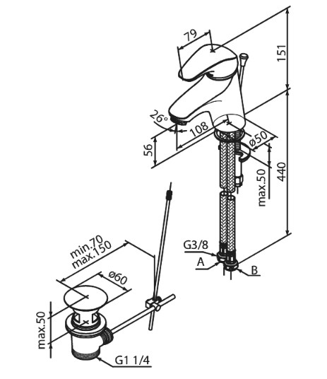 Damixa Pine Bateria umywalkowa z korkiem chrom 178220000