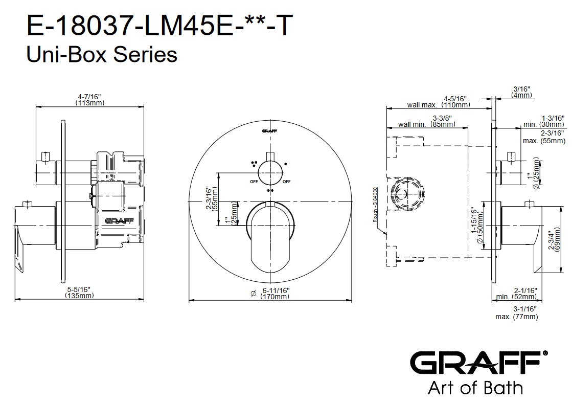 Graff Ametis Bateria natryskowa termostatyczna z przełącznikiem 3-drożnym - element zewnętrzny Chrom E-18037-LM45E-T