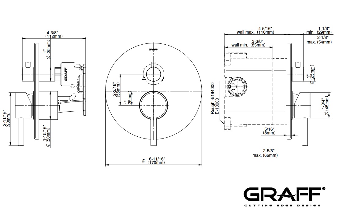 Graff Bateria natryskowa podtynkowa z przełącznikiem 3-drożnym - element zewnętrzny Chrom E-17031-LM46A-T