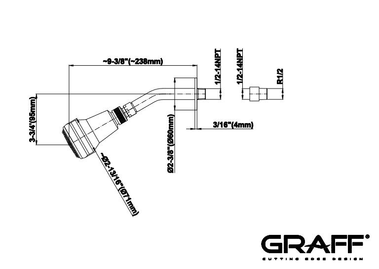 Graff Deszczownica Ø 71 mm na ramieniu ściennym Chrom E-8338