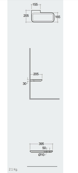 Rak Ceramika Valet Półka ceramiczna prawa 39,5x20,5 do lustra biały mat VALAC3608500A