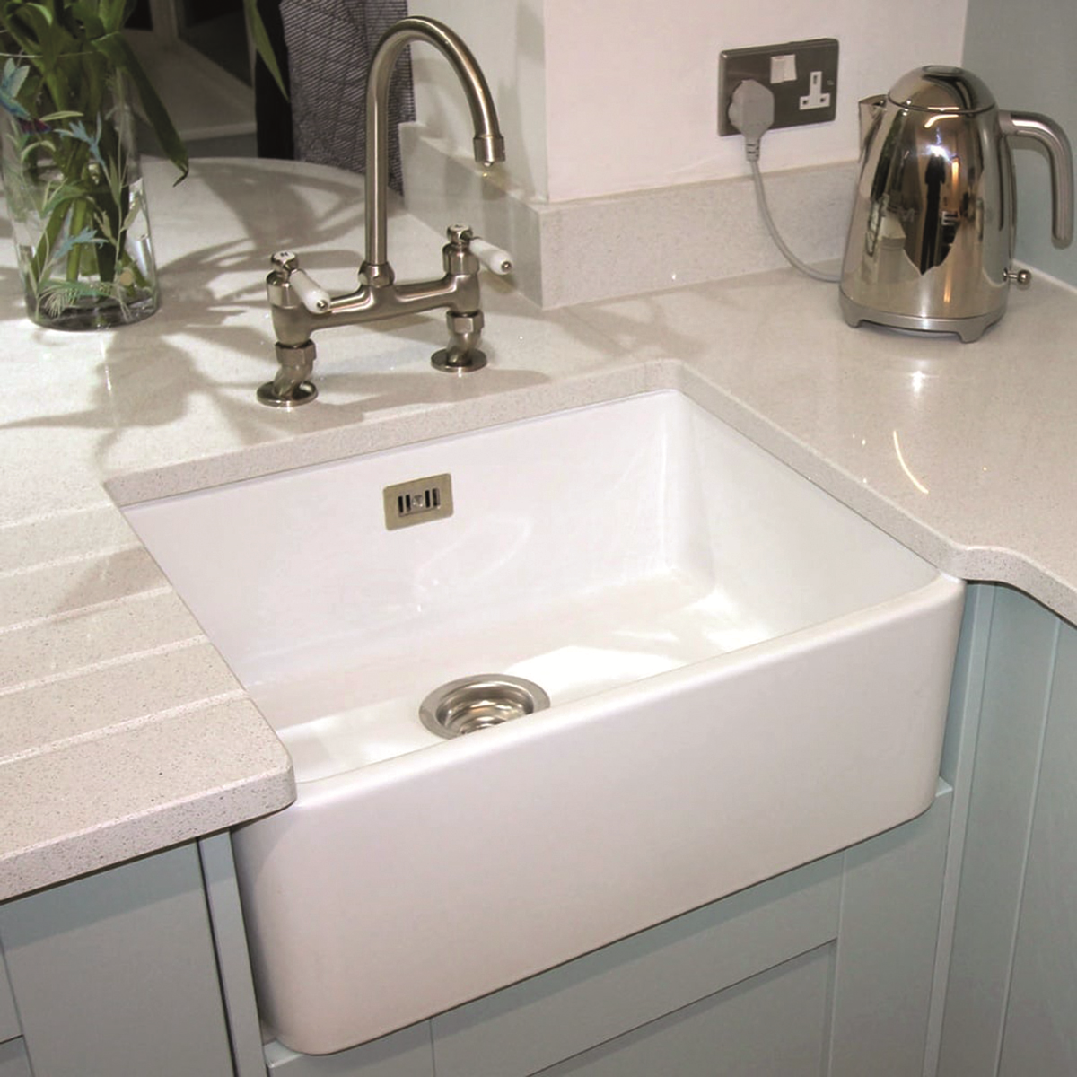 Rak Ceramika Tulip Zlewozmywak ceramiczny jednokomorowy z syfonem 59,5x47,5 biały połysk TULSET