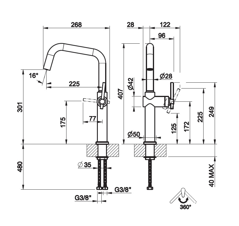 Gessi Habito Bateria kuchenna z obrotową wylewką Chrom 60650.031