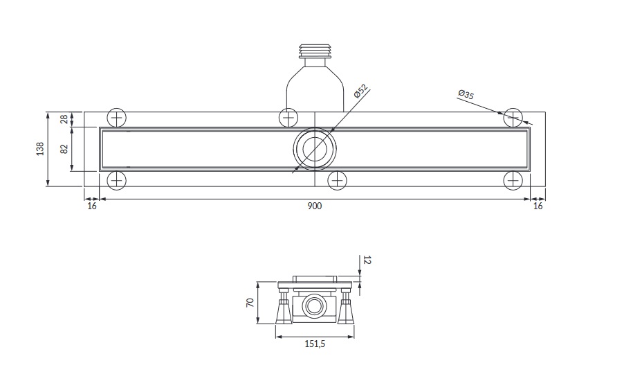 rynna odpływowa oraz maskownica wykonana z anodowanego aluminium