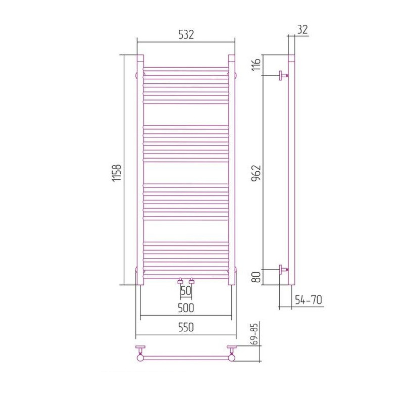 Sunerzha Bohemia EU50 Grzejnik łazienkowy ścienny 115,8x53,2 cm Stal polerowana 50214-50