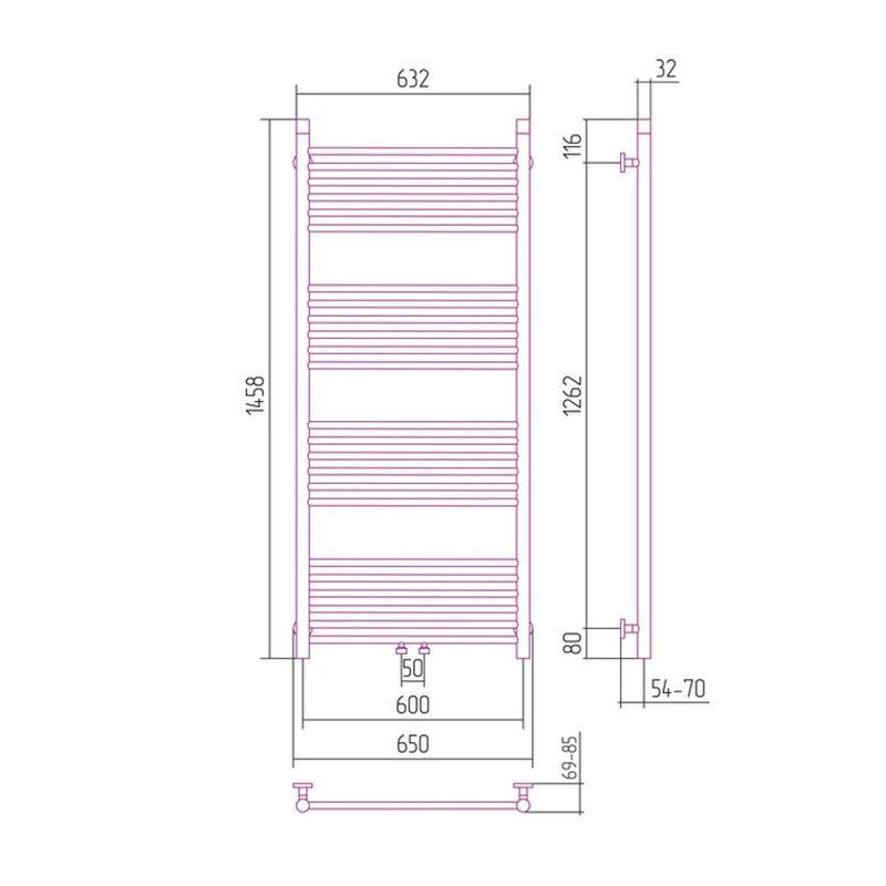 Sunerzha Bohemia EU50 Grzejnik łazienkowy ścienny 145,8x63,2 cm Stal polerowana 50217-50