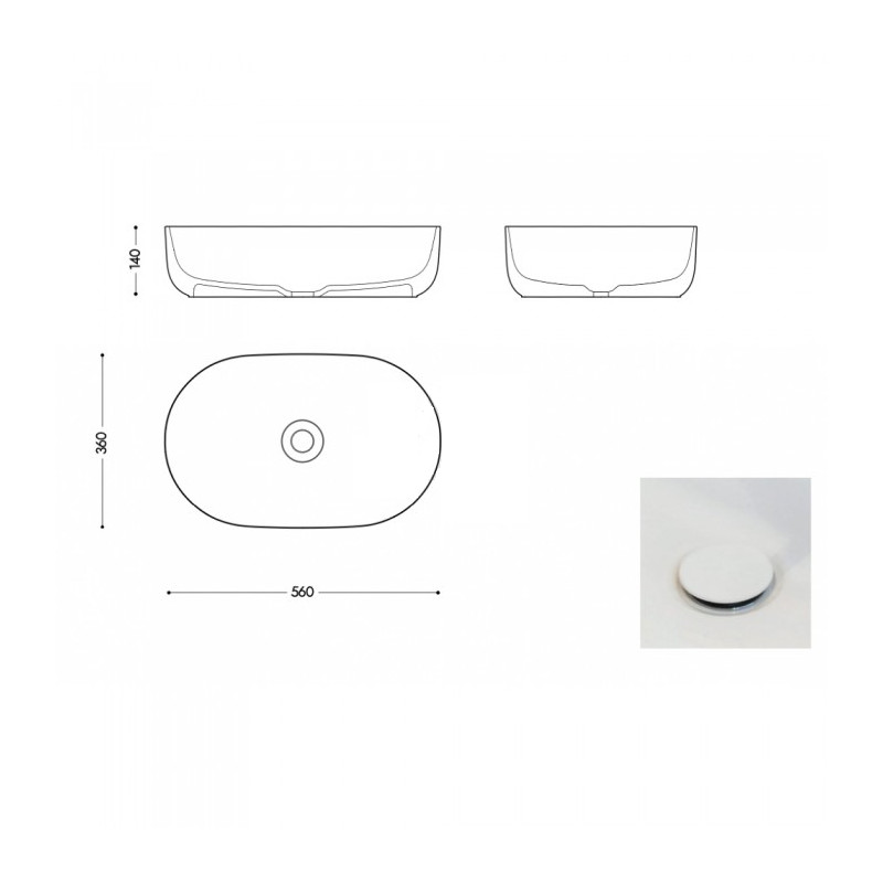 Casa Di Vanna Rubino Umywalka stawiana na blat 56x36 Biały matt Rubino560360MW