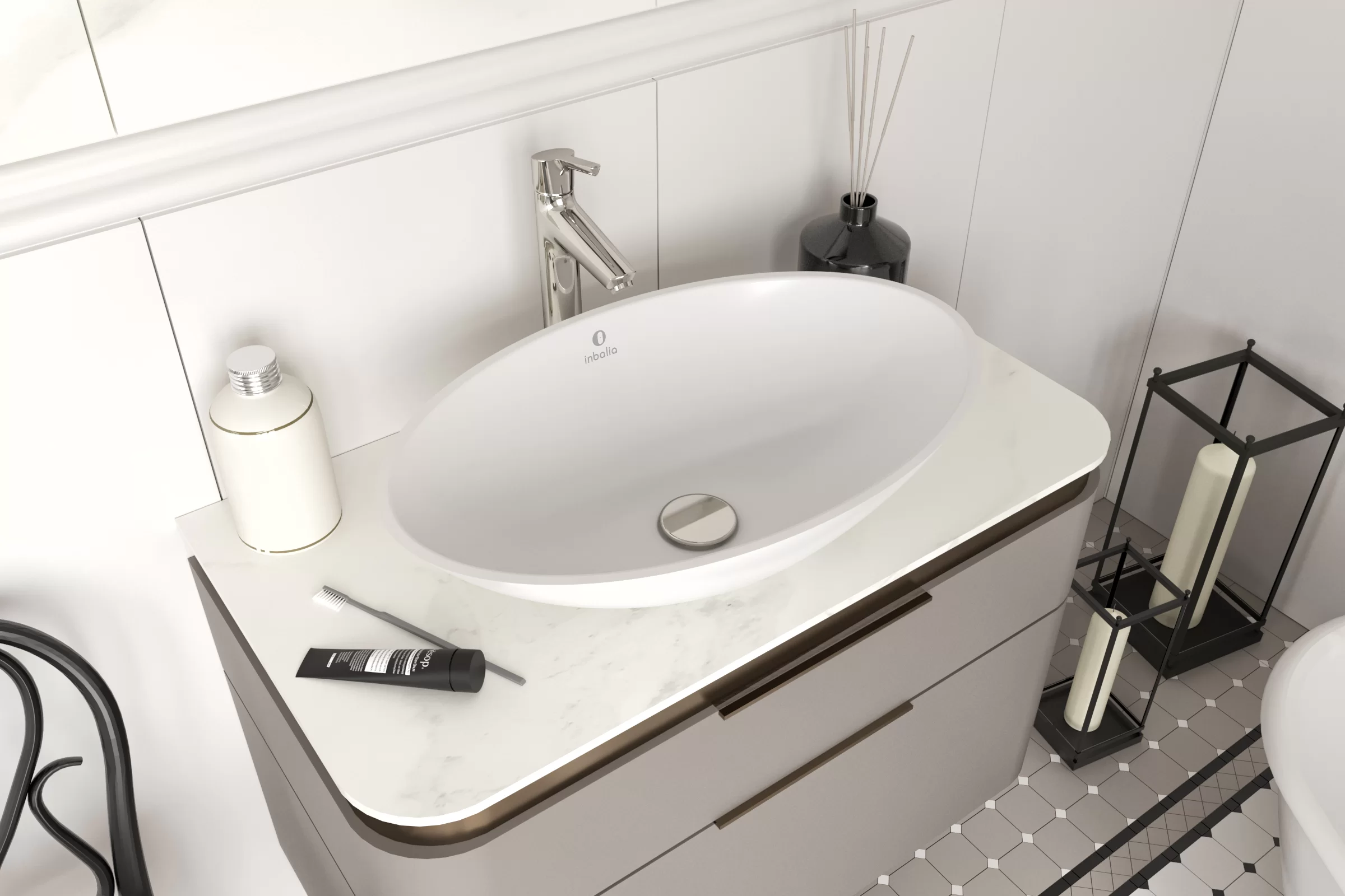 Inbalia Sycylia Umywalka nablatowa 56x35 biały mat WBOC00024C00M110I