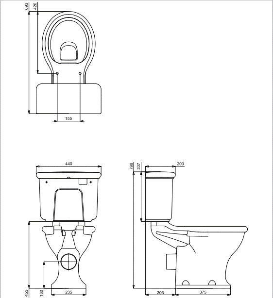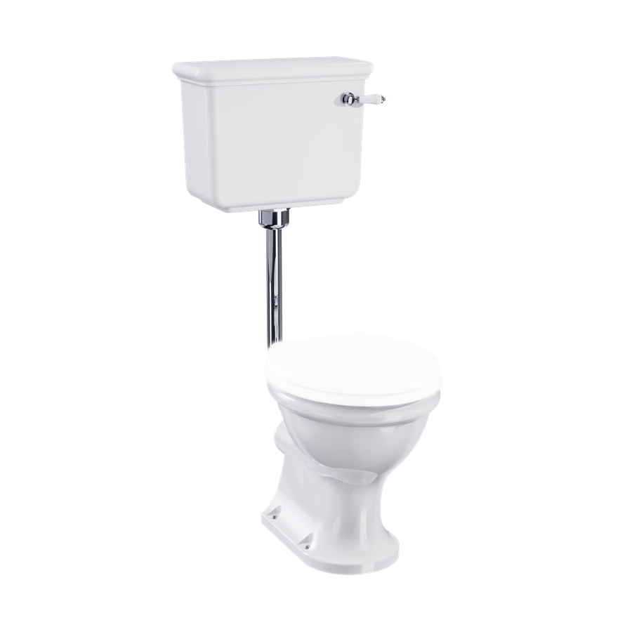Burlington Guild Miska bezrantowa ze spłuczką niską z rączką i rurą spłukującą 69,3x44 biały GU6118CW+GU7005CW+T31CHR