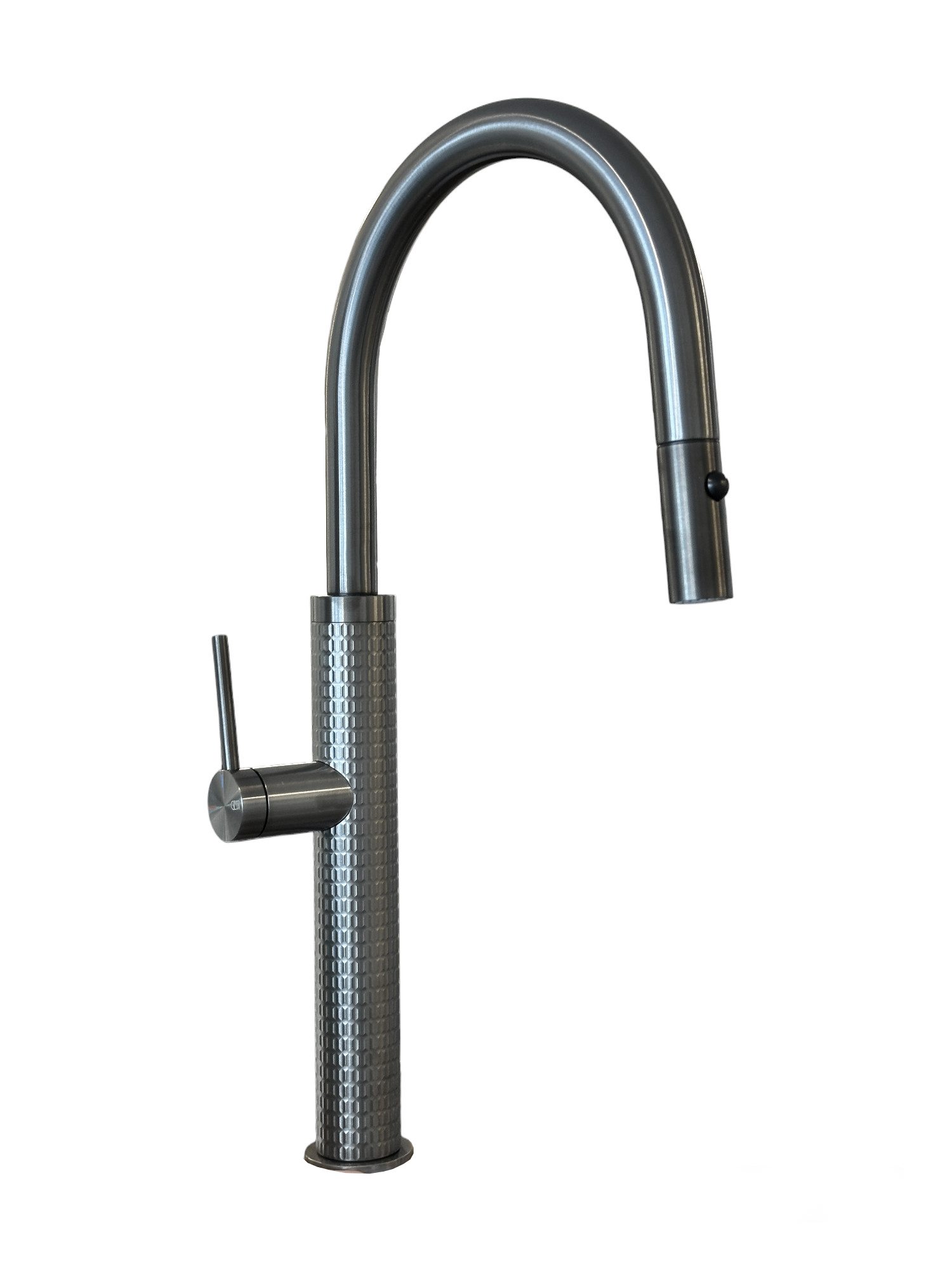Gessi 316 Bateria kuchenna z obrotową i wyciąganą wylewką Black Metal Brushed PVD 60024.707