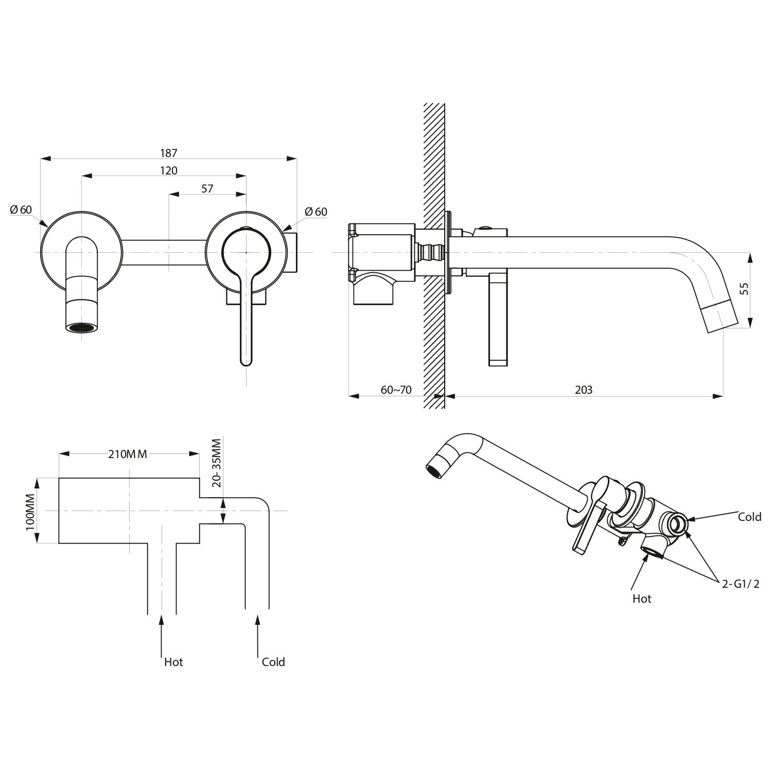Sapho Iconic Bateria umywalkowa podtynkowa chrom AF008