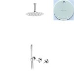 Bateria natryskowa podtynkowa z deszczownicą sufitową i zestawem: słuchawka prysznicowa, uchwyt z przyłączem