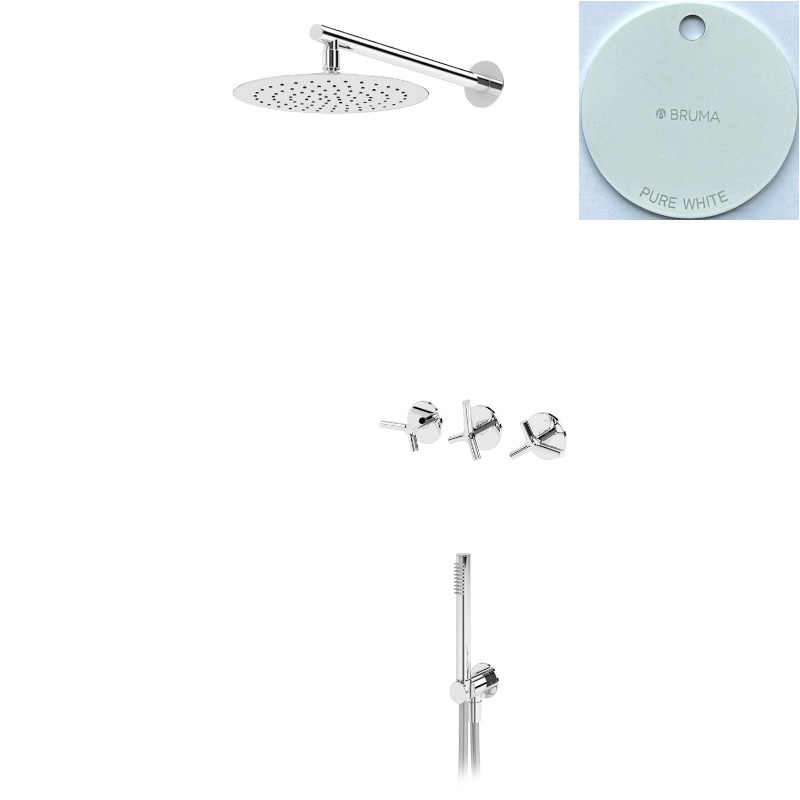 Bruma Genesi Zestaw prysznicowy podtynkowy z deszczownicą ścienną Ø 250 mm i słuchawką prysznicową Pure White 1913103PW