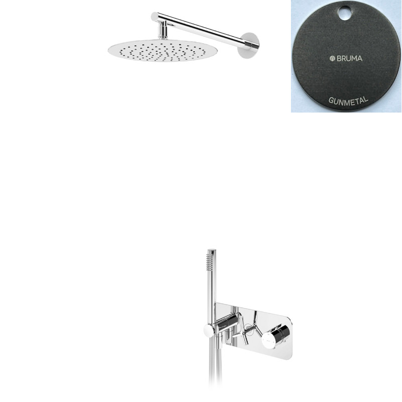 Bruma Genesi Zestaw prysznicowy podtynkowy termostatyczny z deszczownicą ścienną Ø 250 mm i słuchawką prysznicową Gunmetal 1917821MG