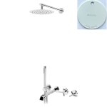 Bateria termostatyczna wannowo-natryskowa podtynkowa, z deszczownicą i zestawem natryskowym: słuchawka, wąż i przyłącze z uchwytem