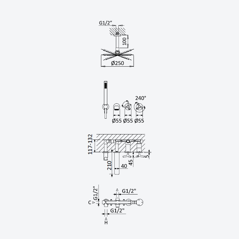 Bruma Genesi Zestaw wannowo-natryskowy termostatyczny podtynkowy z deszczownicą sufitową Ø 250 mm ze słuchawką prysznicową Sunrise 1913221SR