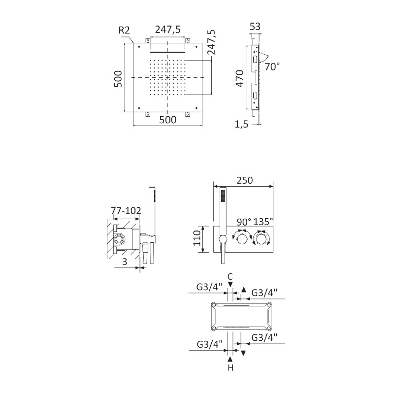 Bruma Leaf Zestaw natryskowy podtynkowy z deszczownicą sufitową 500x500 mm Chrom 1874882CR