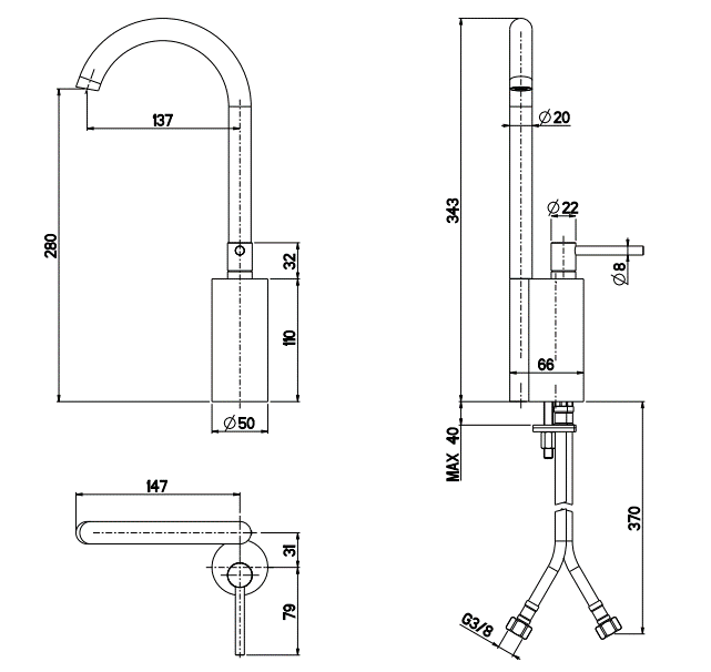 Wysokość wylewki: 28 cm