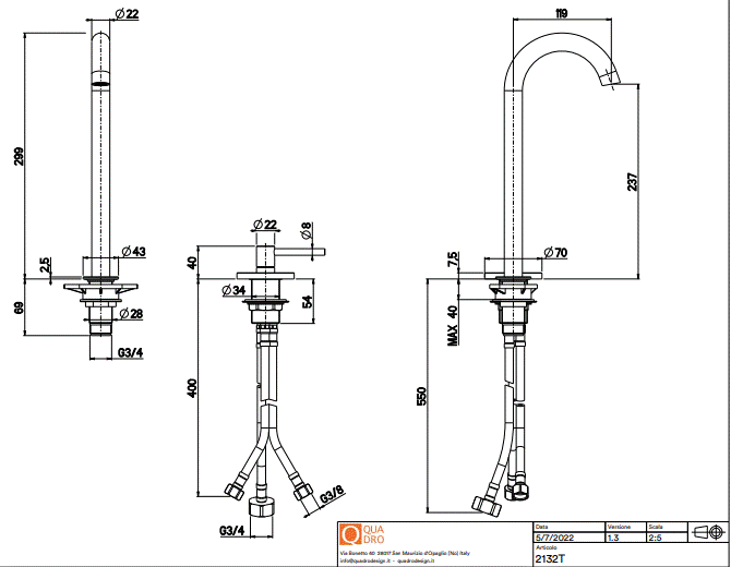 QuadroDesign FFQT Bateria umywalkowa brushed stainless steel 2132TAS