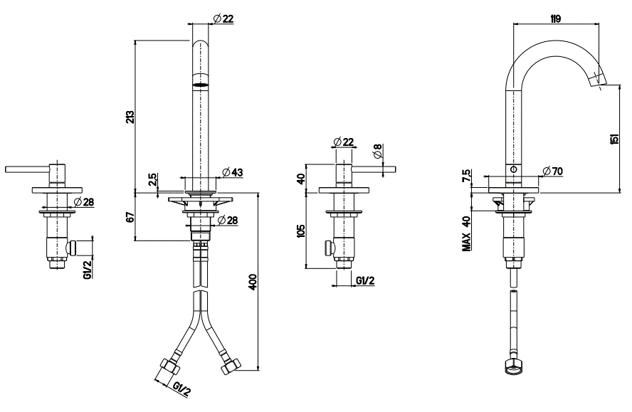QuadroDesign FFQT Bateria umywalkowa brushed stainless steel 2131VAS