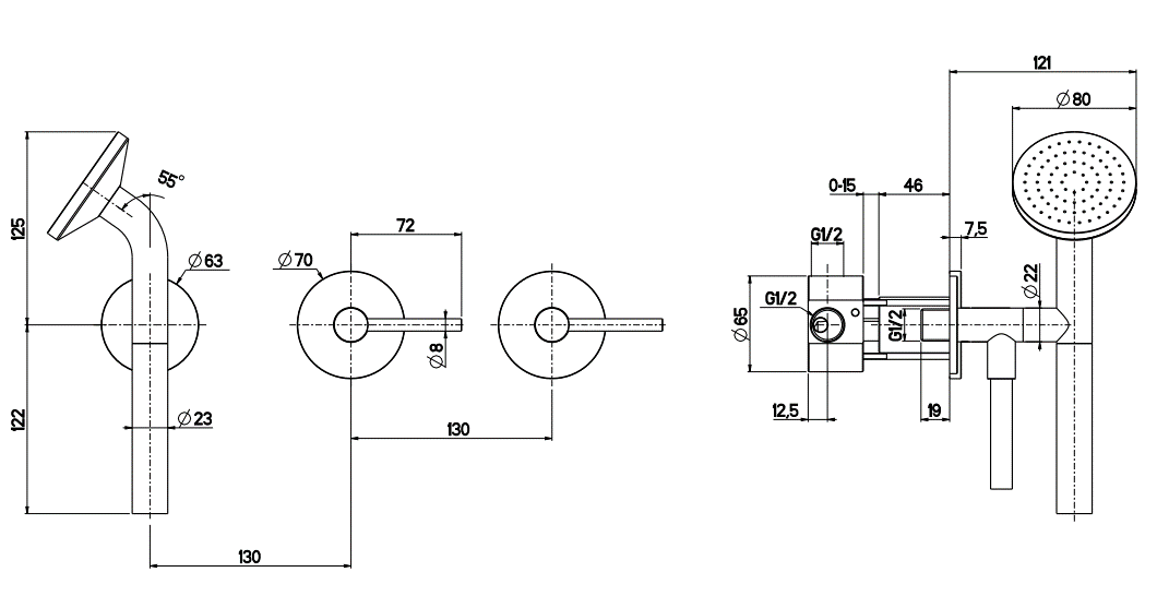 QuadroDesign FFQT Bateria prysznicowa podtynkowa ze słuchawką i wężem brushed stainless steel 2168TAS