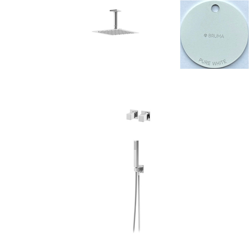 Bruma Adamastor Zestaw natryskowy podtynkowy 250x250 mm z ramieniem sufitowym i słuchawką prysznicową Pure White 3016632PW
