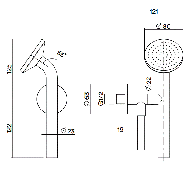 QuadroDesign FFQT Słuchawka prysznicowa z wężem i uchwytem brushed stainless steel 2166AS