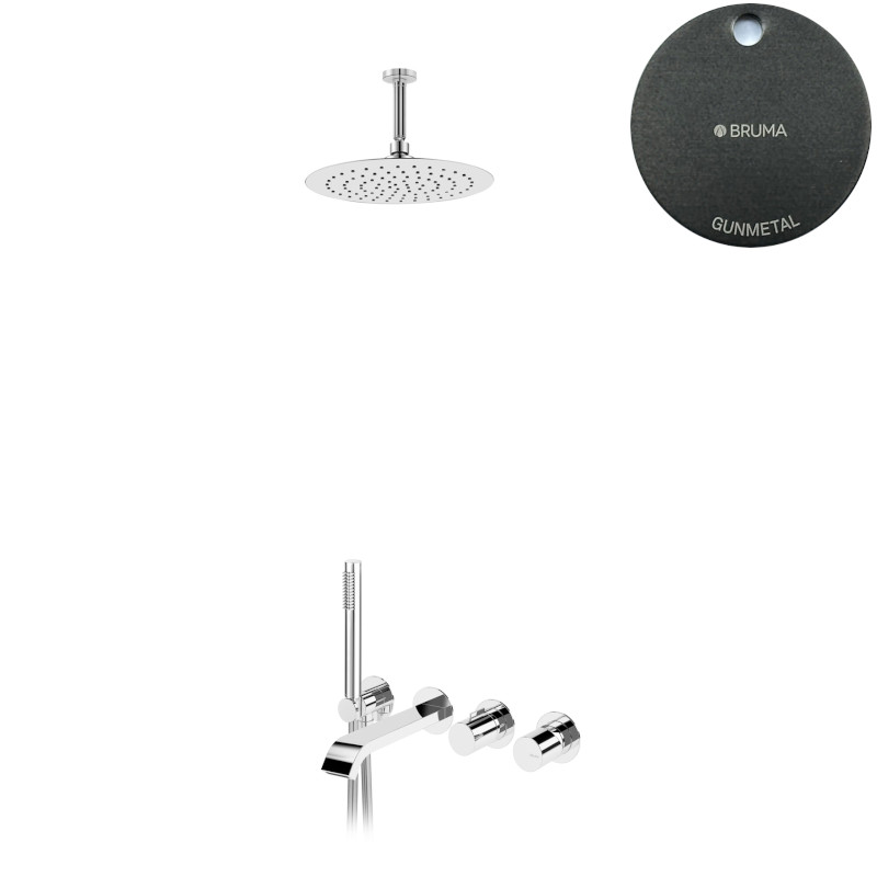 Bruma Avalon Bateria wannowo-natryskowa podtynkowa z deszczownicą sufitową Ø 250 mm i słuchawką prysznicową Gunmetal 1893331MG