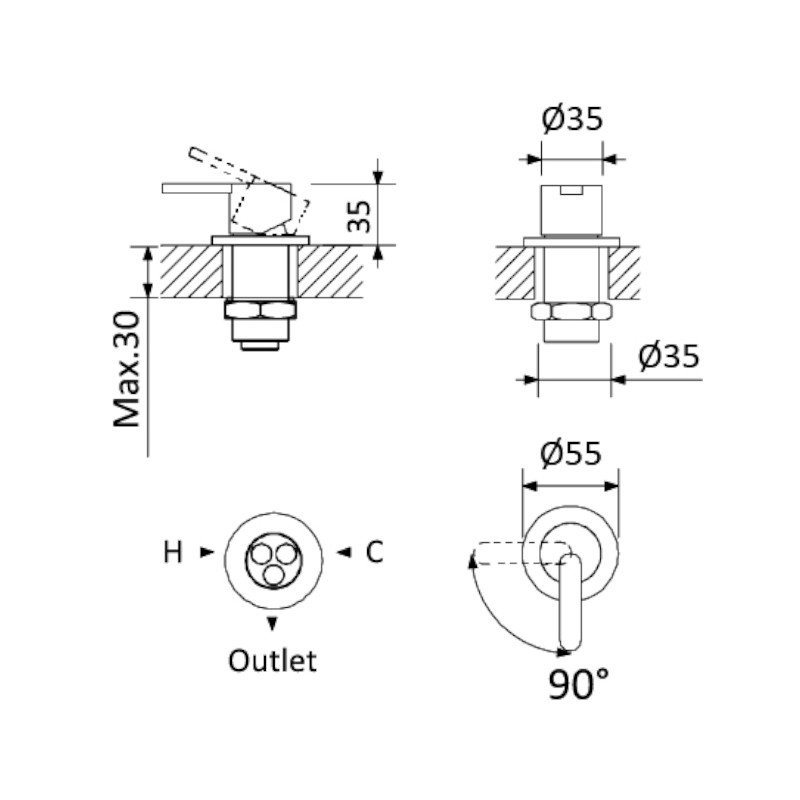 Bruma X-Alpha Zawór nablatowa 1-drożny Satin stainless steel 1860015IS