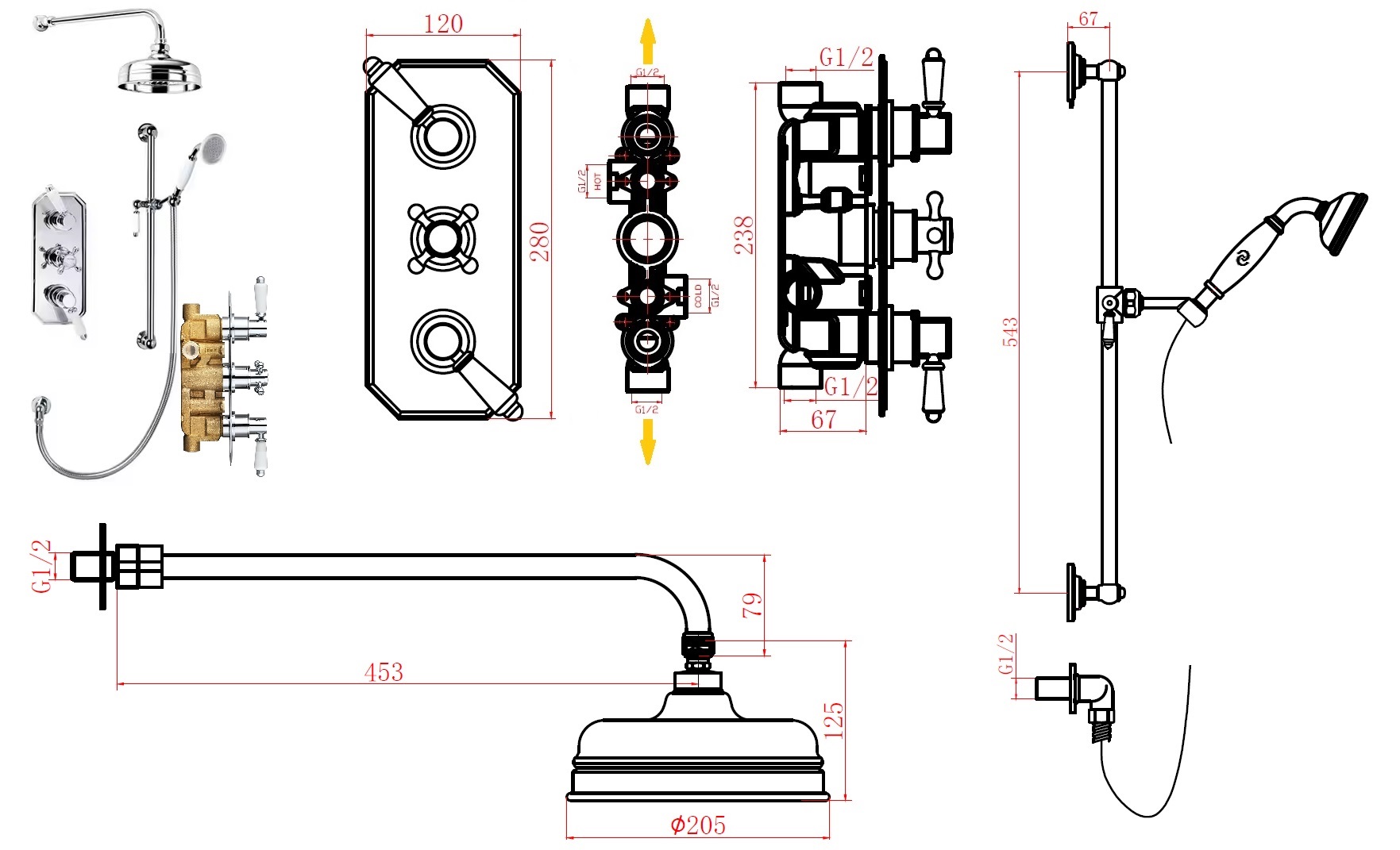 Galatea Design Retro Zestaw prysznicowy termostatyczny podtynkowy chrom GDTF3SCHR