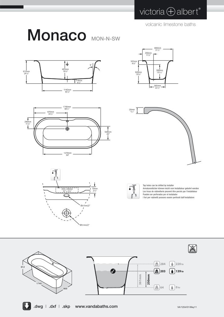 Victoria+Albert Monaco Wanna Wolnostojąca 174x80 cm Biała MON-N-SW-OF