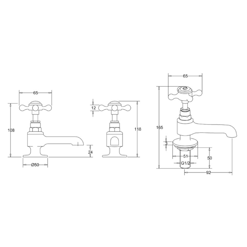 Burlington Stafford Bateria umywalkowa 2-otworowa z długą wylewką z pokrętłami Chrom STA12_QT