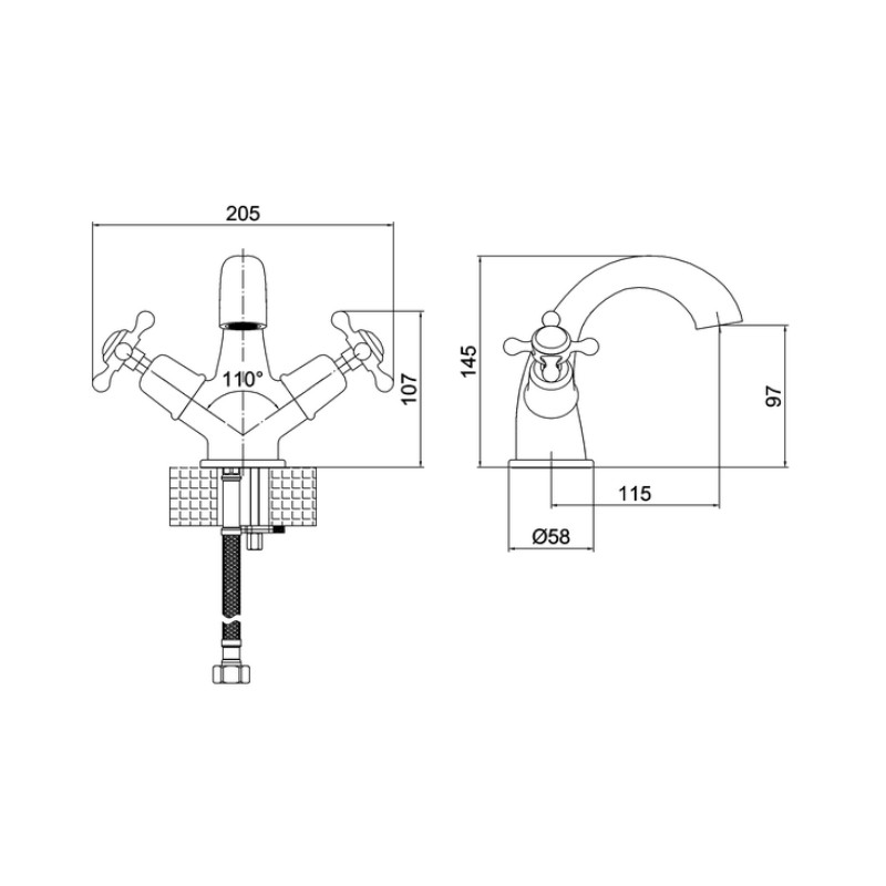 Burlington Claremont Bateria umywalkowa 1-otworowa bez pokręteł Chrom T27_QT