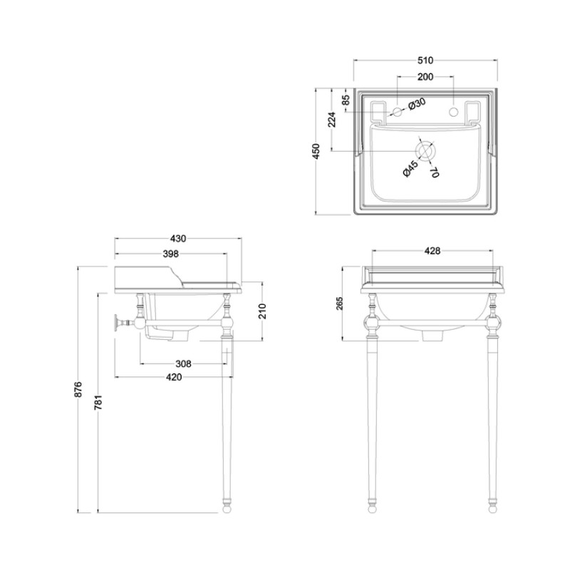 Burlington Classic Stelaż pod umywalkę 42x40 Brushed Nickel T52BNKL