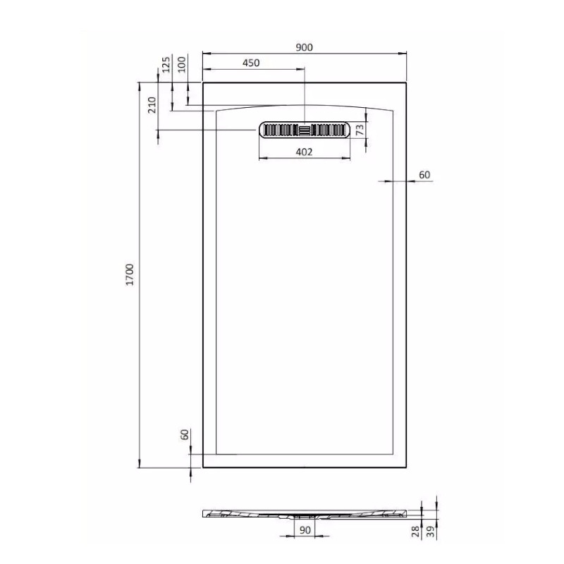 Burlington Calton Brodzik prostokątny 90x170 cm biały połysk VTR900X1700W