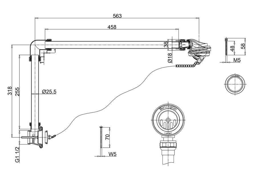 Burlington Komplet odpływowo-przelewowy z korkiem na łańcuszku bez syfonu Brushed Nickel W4BNKL
