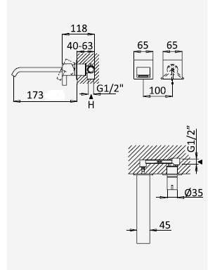 Wysięg wylewki: 173 mm