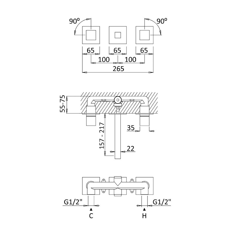 Bruma Element podtynkowy baterii umywalkowej 3-otworowej 2001501NO