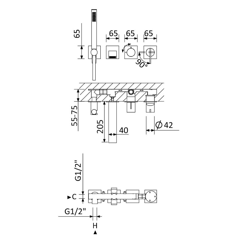 Bruma Elemen podtynkowy do baterii wannowo-natryskowej termostatycznej 2-drożnej 2003001NO