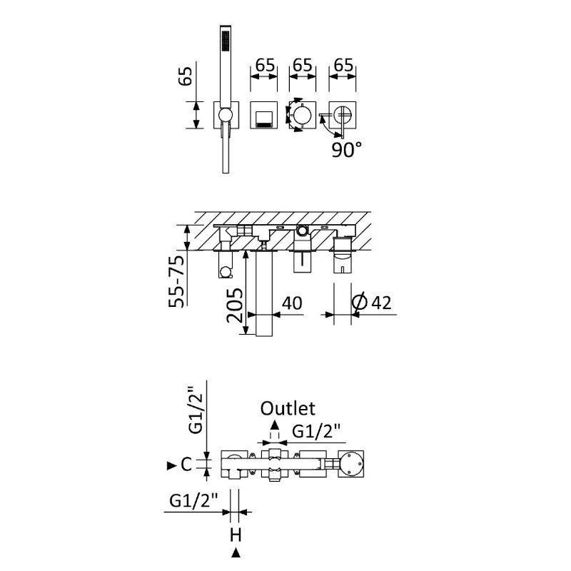 Bruma Element podtynkowy baterii wannowo-natryskowej 3-drożnej 2003002NO W MAGAZYNIE !!!