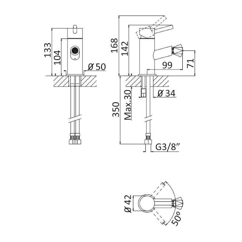 Bruma Lusitano Bateria bidetowa 1-otworowa z korkiem Click-Clack Night Sky 1070211NS